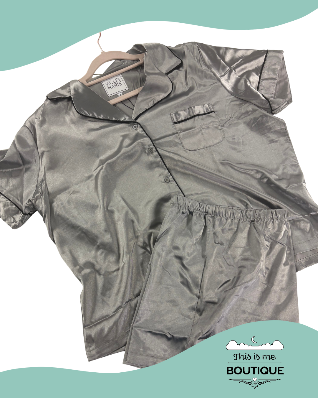 Satin Pyjamas Shorts Set for Women – Black or Silver
